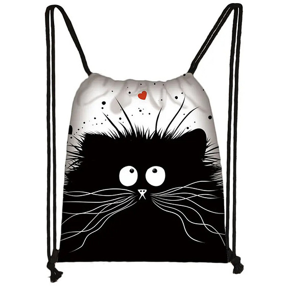 Gymtas/Trekkoordtas - Kat Rood Hartje - Wit&Zwart - Dubbelzijdig - 40x31cm