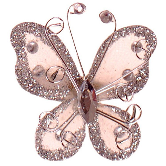 Het vlindertje is versierd met verschillende steentjes en glitters.