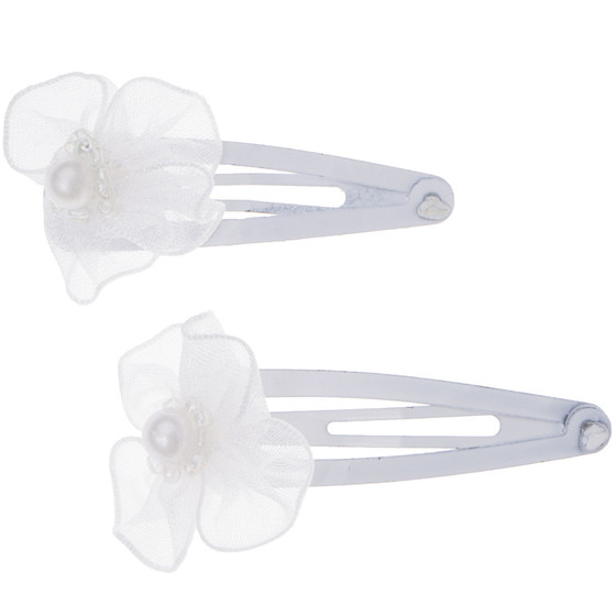 Haarspeldjes met lieve bloemetjes van een witte doorzichtige stof.