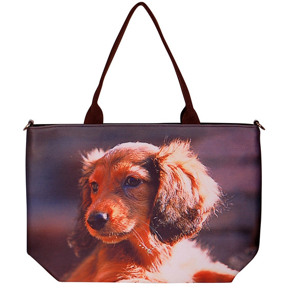 Grote handtas met een kwalitatief mooie foto van een hond.