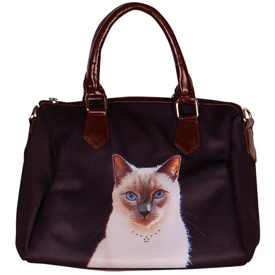 Mooie stoere handtas met een afbeelding van een poes.