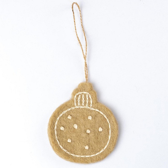 Hanger Vilt - Kerstbal Geborduurd Motief - Mistletoe - 8cm - Beige/Creme - Vlak - Fairtrade