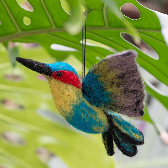 Hanger Vilt Vogel - Kolibrie Blauw/Rood/Geel - 14x9cm - Homedeco - Fairtrade