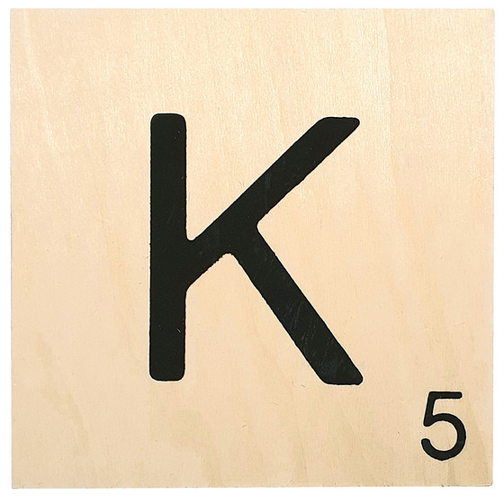 Houten Bordje 10x10x0.5cm - K - Zwarte Letter/Woordwaarde - Onbehandeld - Onderzetter/Homedeco