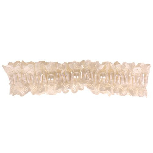 Ivoren Kousenband grote maat - met kant en 3 pareltjes
