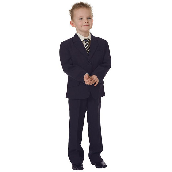 Hier gecombineerd met een kinderoverhemd, kinderstropdas en nette schoenen.