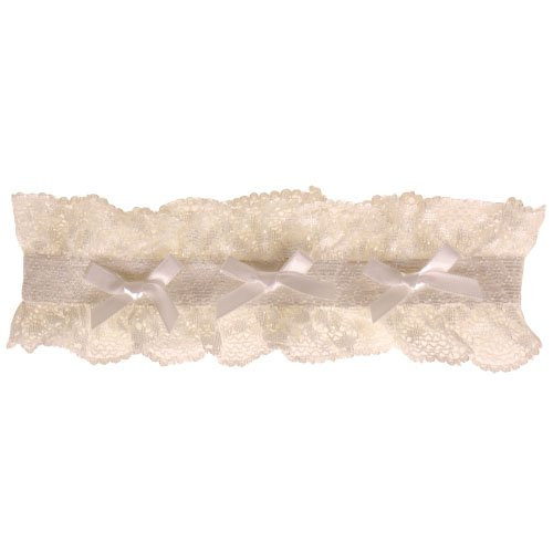 Kanten ivoren Kousenband XXL - met 3 strikjes
