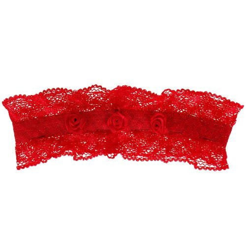 Chique kanten rode kousenband grote maat.
