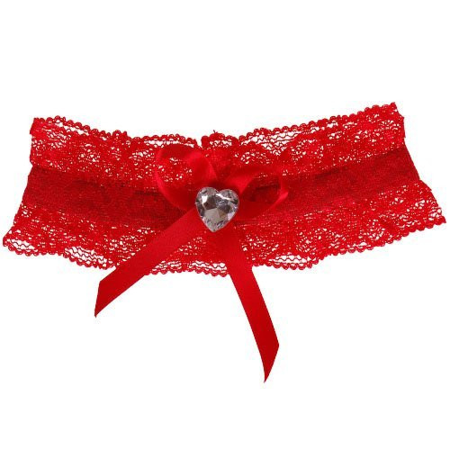 Kanten rode Kousenband XXL - met strikje en strass hartje