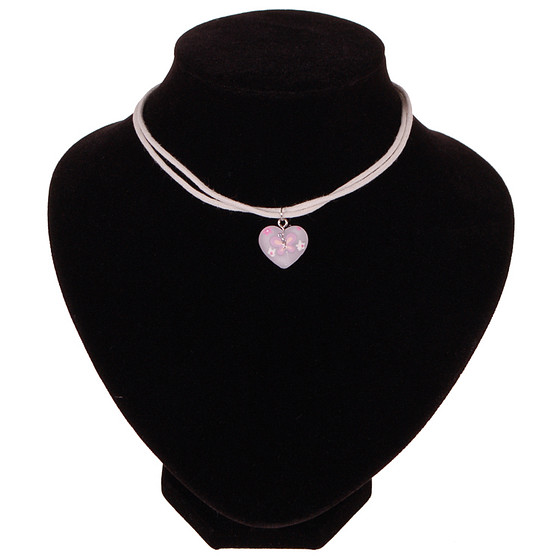 Aan de ketting hangt een wit hartje.