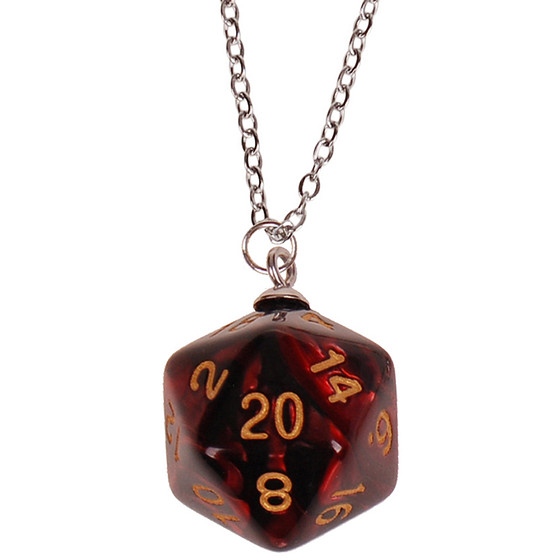 Ketting Zilverkleurig 55cm - Hanger DnD D20 dobbelsteen zwart/rood 2,5cm