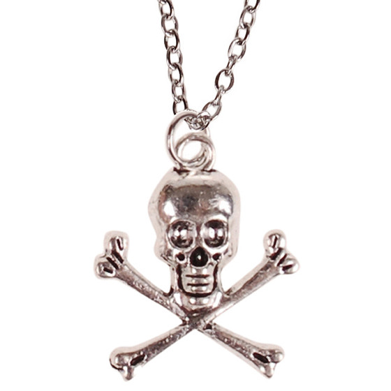 Ketting Zilverkleurig 55cm - Hangertje Schedel en Botten zilverkleurig
