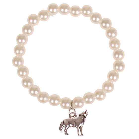 Kinderarmbandje Ivoorkleurige Imitatie Parels 6mm - Hangertje Huilende Wolf zilverkleurig 1,8cm