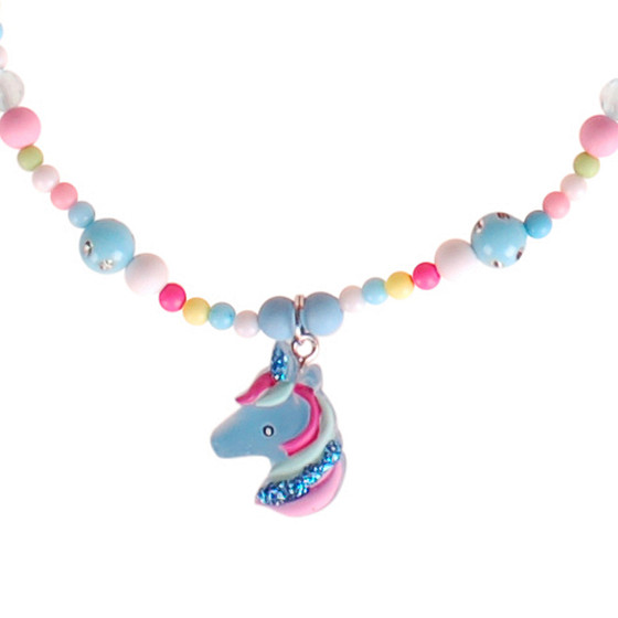 Kinderketting - Eenhoorn Blauw - Gekleurde Kraaltjes met Strass - Elastisch