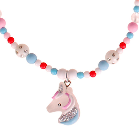 Kinderketting - Eenhoorn Wit - Gekleurde Kraaltjes met Strass - Elastisch