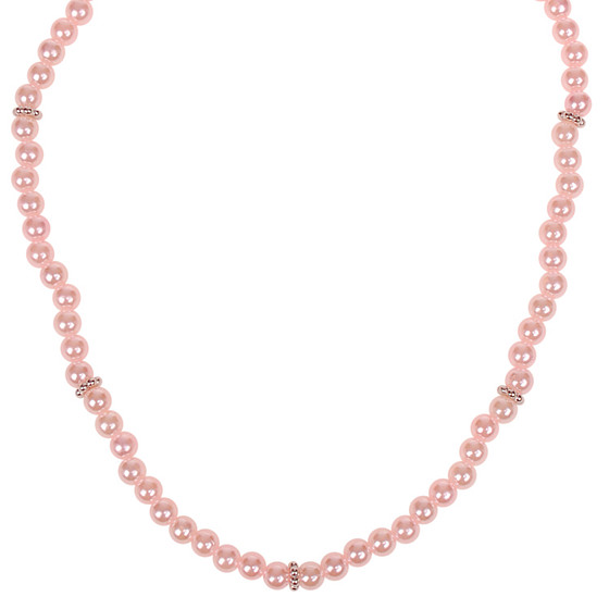 Kinderketting - Lichtroze Imitatiepareltjes 6mm - Zilverkleurige Spacers - Elastisch