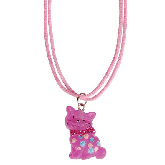Kinderketting in de kleur roze met een bedeltje van een poesje.