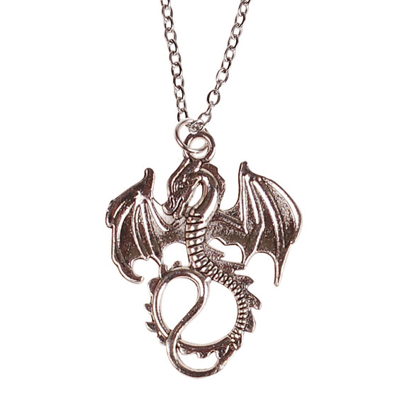 Kinderketting Zilverkleurig 45cm - Hangertje Draak groot zilverkleurig