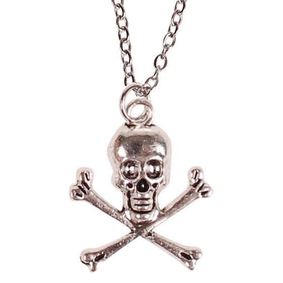 Kinderketting Zilverkleurig 45cm - Hangertje Schedel en Botten zilverkleurig