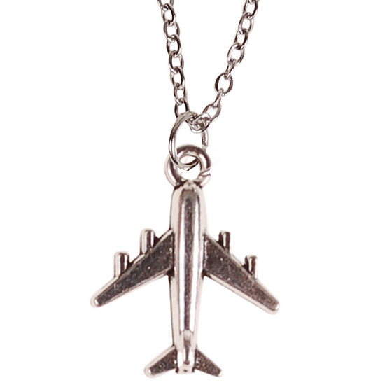 Kinderketting Zilverkleurig 45cm - Hangertje Vliegtuig zilverkleurig
