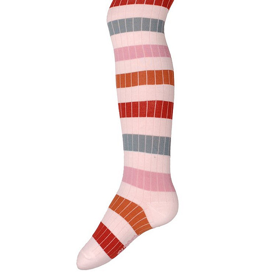 Kindermaillot Ribstof Off-white met Groene, Roze en Oranjebruine Strepen - Biologisch Katoen (GOTS) - Ewers