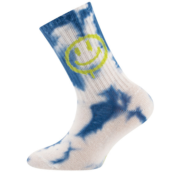 Kindersok Ewers Wit - Blauwe Tie-Dye/Batik - Smiley