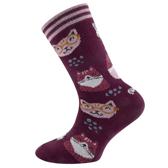 Kindersokken Wijnrood met Grappige Poezenhoofden