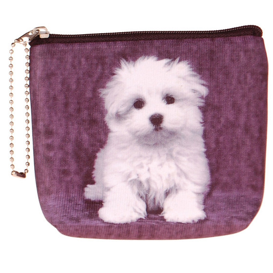 Op het portemonneetje staat een afbeelding van een hond.