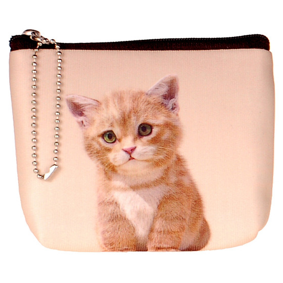 Op het portemonneetje staat een afbeelding een poes.