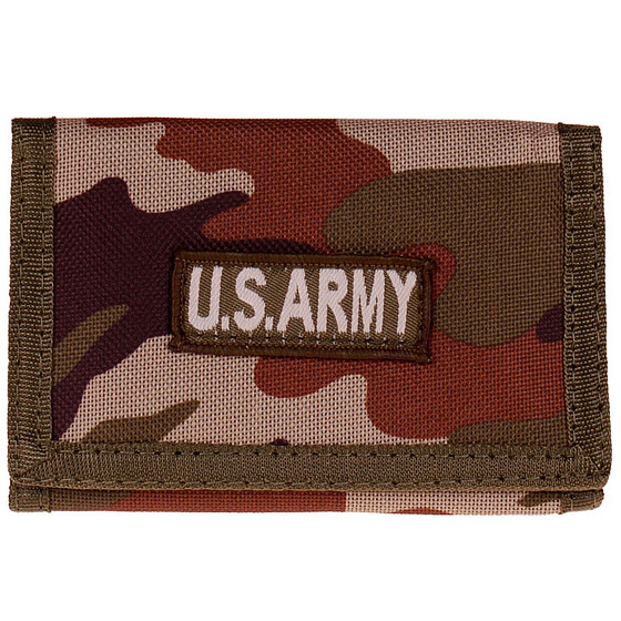 Klittenband Portemonnee Groen/Bruin Camouflage Embleem US Army - 13x8,5cm