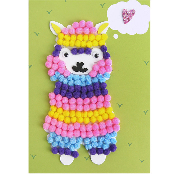 Knutselset Kind 3+ - Lama Glitterhart - Pompoms Vorm Plakken - Hobby - 15x21cm