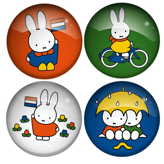 Koelkastmagneet - Glasmagneet Rond - Nijntje NL Complete Set - Fiets/Vlag/Tulpen/Regen - 3cm
