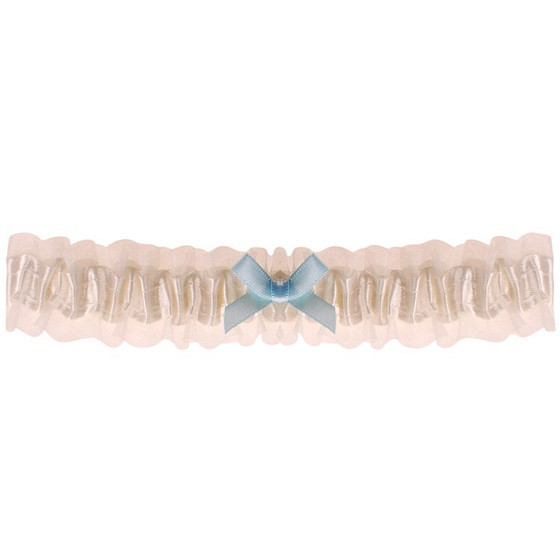 Kousenband grote maat - ivoor met blauw strikje