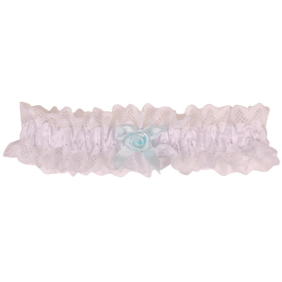 Kousenband Grote Maat - Wit met Broderie & Lichtblauw Strikje met Roosje - 45cm Elastisch