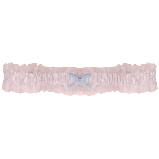 Kousenband Grote Maat - Wit met Organza & Lichtblauw Strikje - 45cm Elastisch