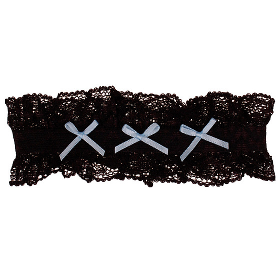 Kousenband Grote Maat - Zwart met Kant & Lichtblauwe Strikjes - 45cm Elastisch