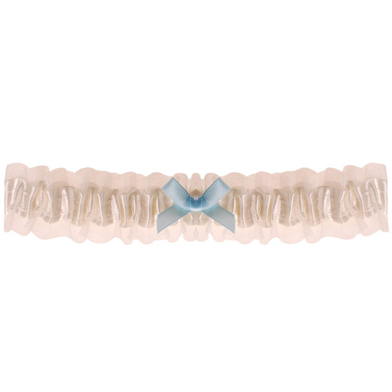 Kousenband ivoor met blauw strikje