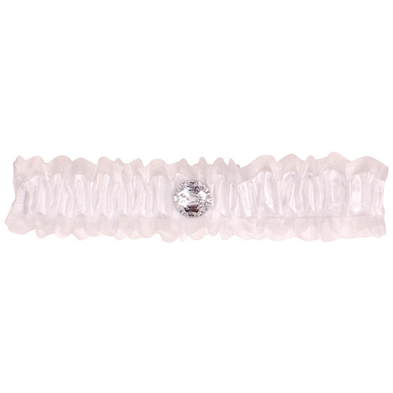 Kousenband wit met strass knoopje