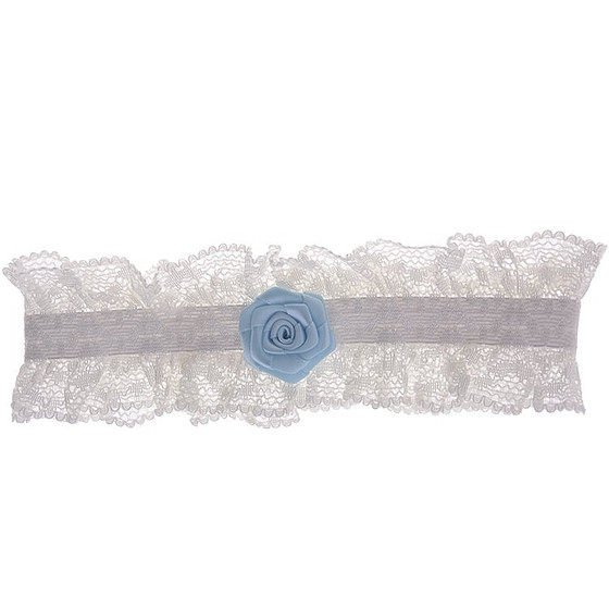 Op het midden van deze kousenband grote maat zit een mooie lichtblauwe roos van ca 3cm groot.