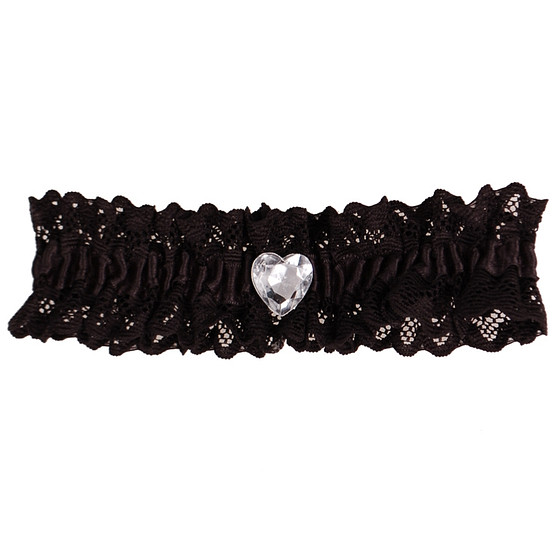 De band is gemaakt van zwart elastisch kant, het bandje in bezet met een strass steentje in de vorm van een hartje.