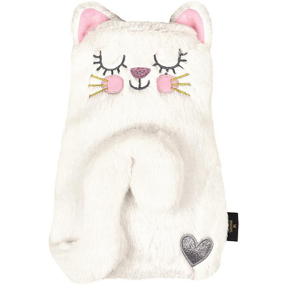 Kruik met Kruikzak Ed The Cat Kitty - Wit Pluche - Natuurlijk Rubber - 36x19cm