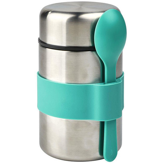 Lunchpot RVS met Lepel - Turqoise - Dubbelwandig - Warm en Koud - 400ml - Moses