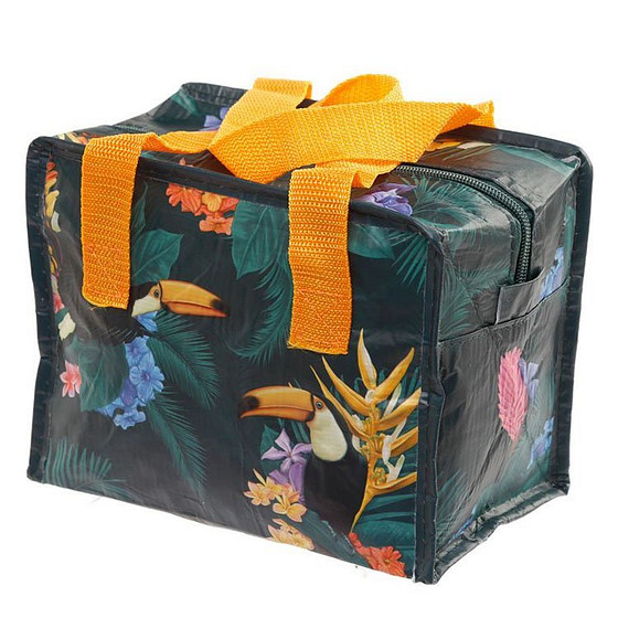 Op de lunchtas staat een leuke afbeelding van een toekan.