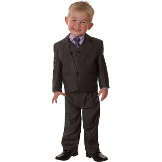 3-delig luxe babykostuum in een mooie donkergrijze stof.