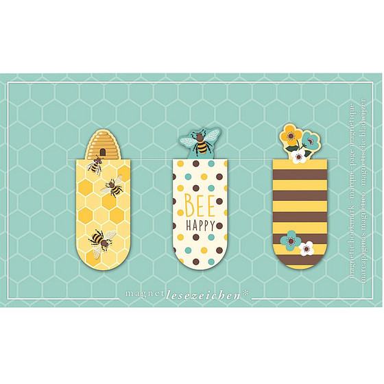Magnetische Boekenlegger - Set van 3 - Bijen/Bee Happy/Bloedjes - 2,1x5,5cm