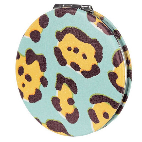 Make-up spiegeltje Wildlifeprint luipaard blauw/geel - 6cm
