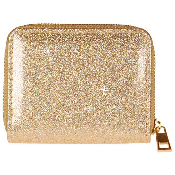 Op de portemonnee zitten leuke goudkleurige glitters en heeft een gouden rits.