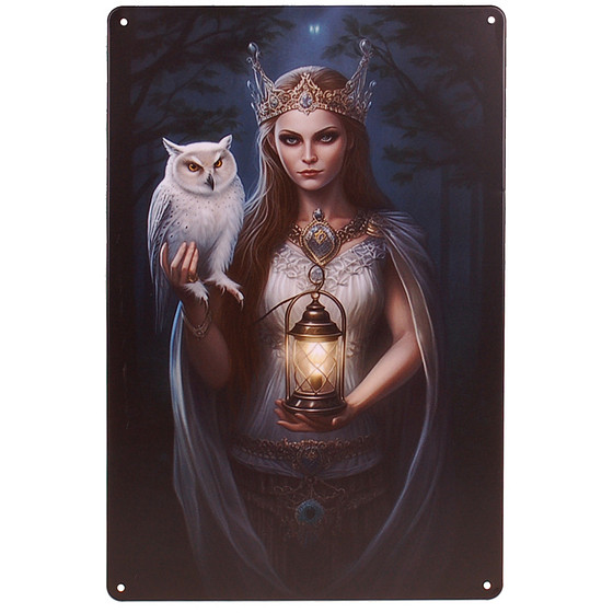 Metalen Plaatje - Bosfee met Kroon en Witte Uil - 20x30cm