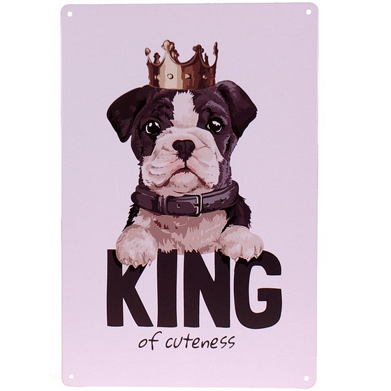 Metalen plaatje Hond met kroon - king of cuteness - 21x33 cm