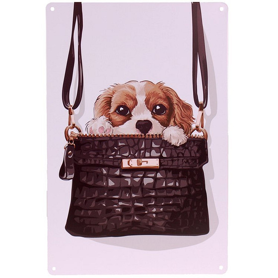 Metalen plaatje hondje in tas - 21x33 cm